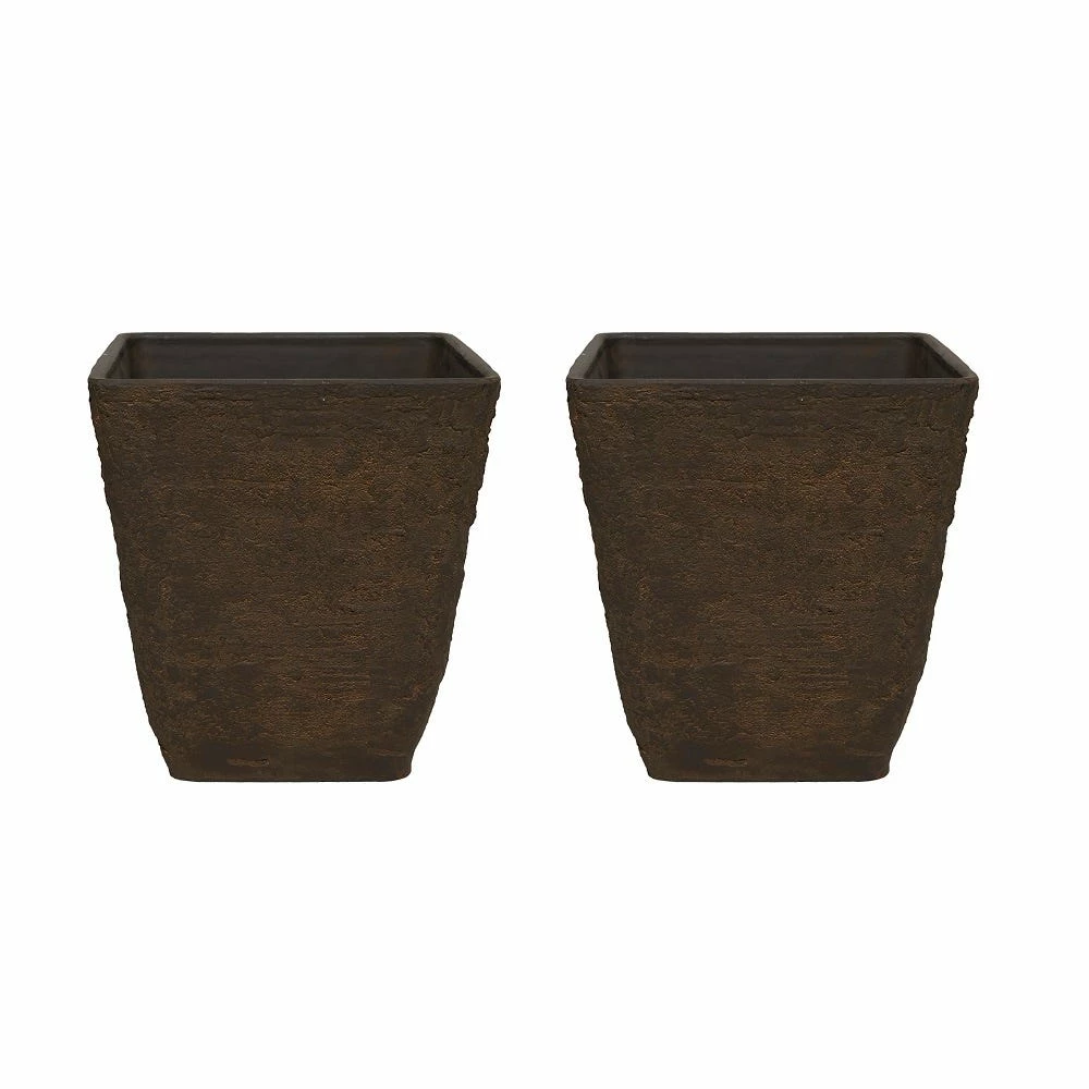 This decorative planter features a contemporary square design in a textured brown finish for a decorative way to display your plants and flowers. Can be placed indoors in your entryway, living room, family room, or foyer as well as outdoors on your patio, porch, or in your garden. Use separately or paired with additional planters to create a stylish garden display.