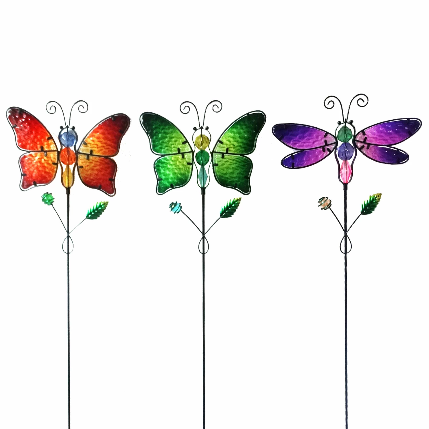 Heralds of lazy summer afternoons, these glass dragonfly and butterfly stakes sparkle gracefully under the sun. These whimsical garden stakes brighten any lawn or garden with pleasant vibrant colors and the sturdy stake ensures long lasting durability.