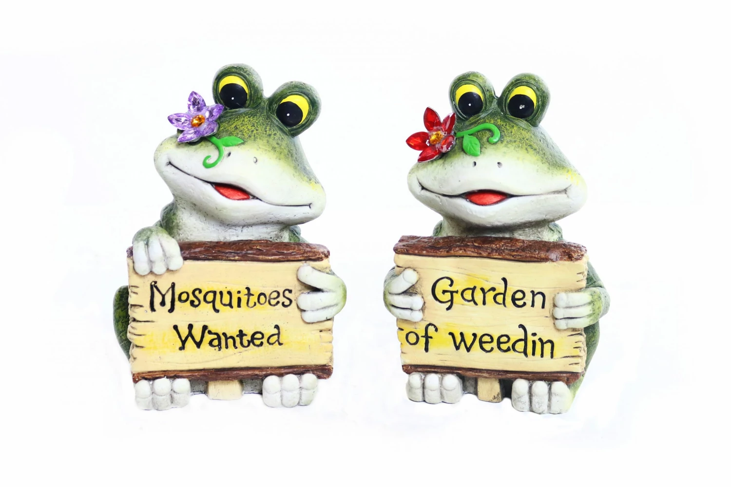 Welcome your visitors with these smiling frogs holding clever little signs. Made of cement and charmingly painted.