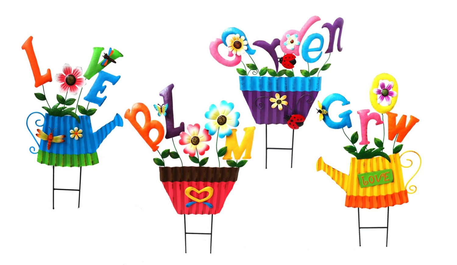The vibrant colors of these garden welcome signs are sure to pop in any lawn or garden. Two pronged stakes allow you to post these signs in any soft soil.