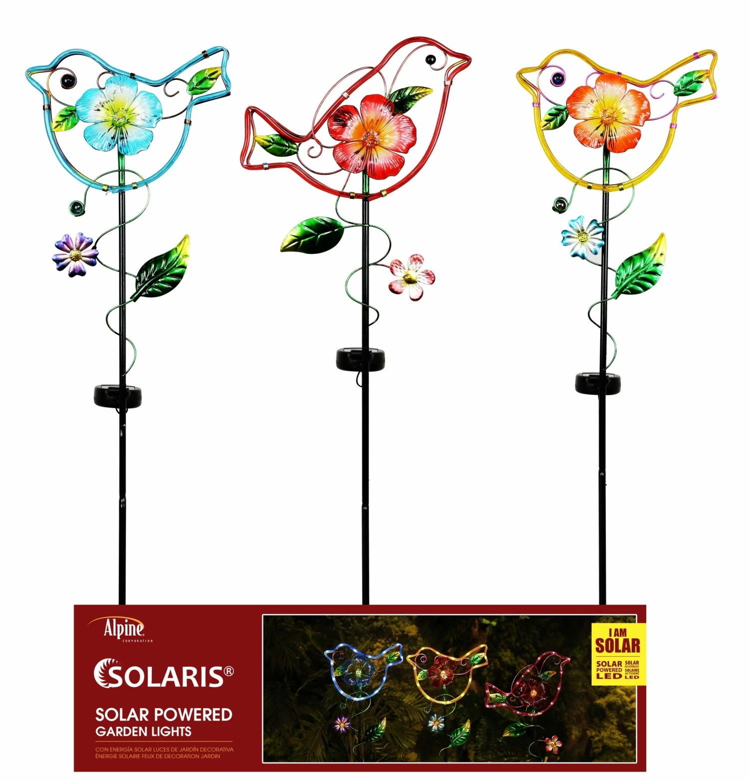 These metal bird stakes feature solar powered LED lights which illuminate automatically at night. Has a working time of up to 8 hours on a full charge.