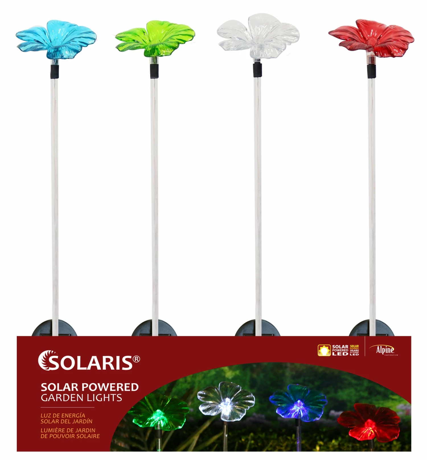 As the flowers in your garden fade from view at night, these solar powered LED flower stakes light up in the darkness for a wonderful display. Solar panels provide up to 8 hours of power on a full charge.