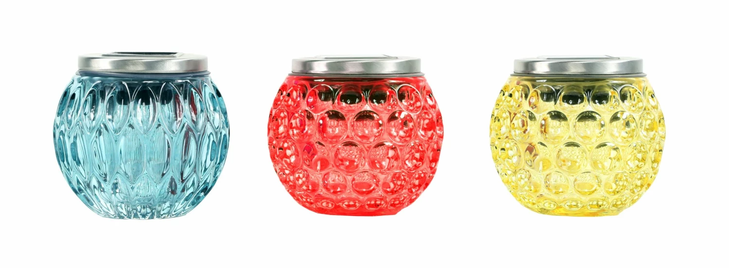 These solar glass LED lights make wonderful accent lighting in any space. Solar powered for up to 8 hours on a full charge.