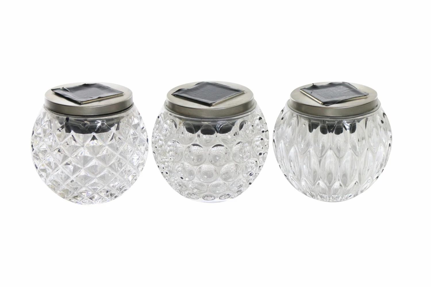 These solar glass lights change colors creating a wonderful display at night. The glass has a textured pattern and the cover is made of stainless steel. Solar panel provides up to 8 hours of power on a full charge.