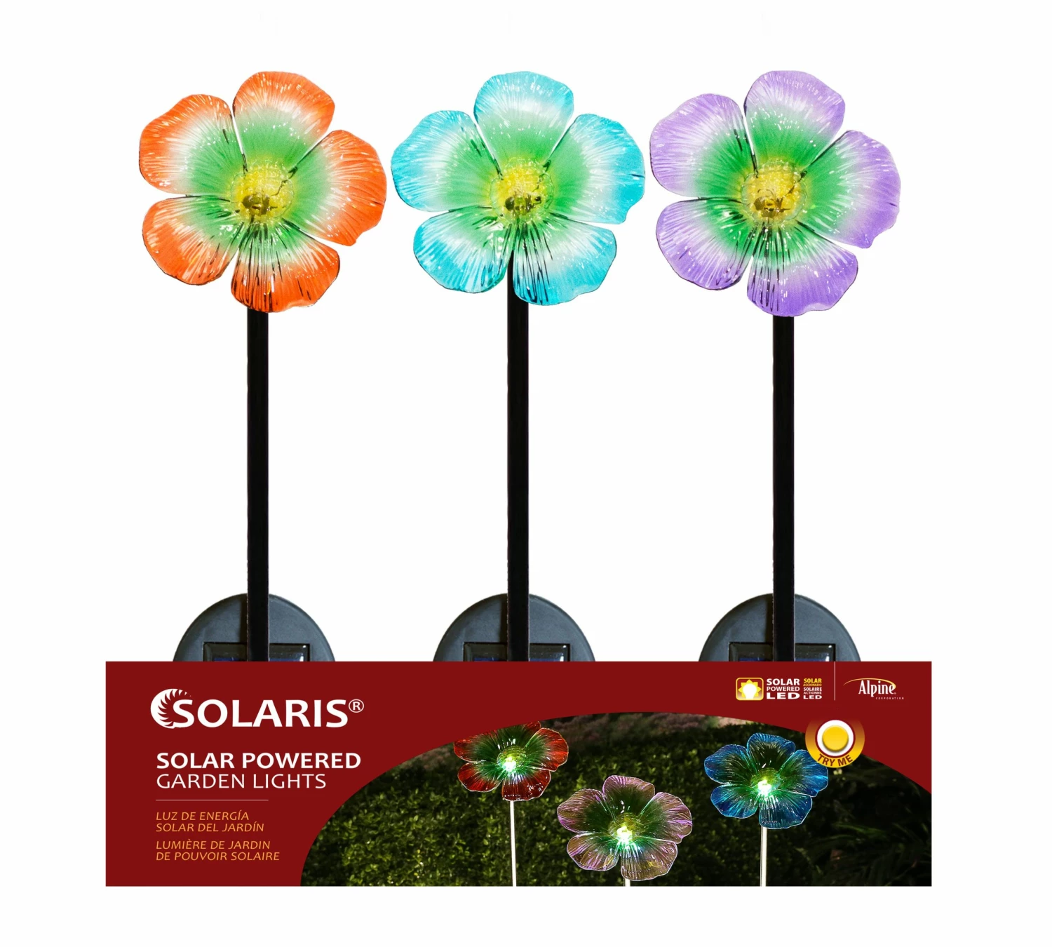 These colorful acrylic solar flower stakes are a perfect accent to any lawn or garden. The solar panels provide up to 8 hours of power on a full charge.