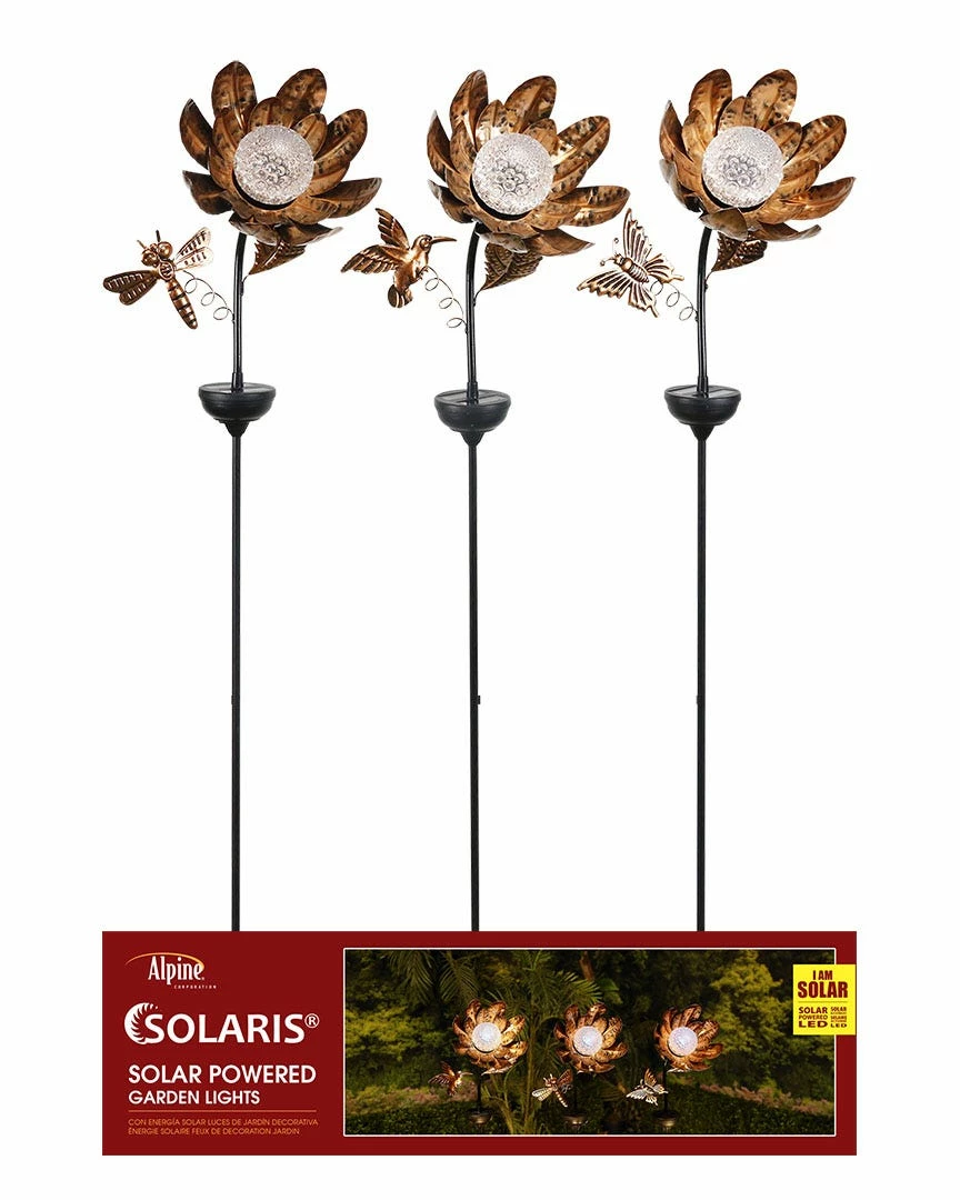 These solar powered flower stakes feature a rotating LED ball which refracts the light creating a wonderful display. Solar panels provide up to 8 hours of power on a full charge.
