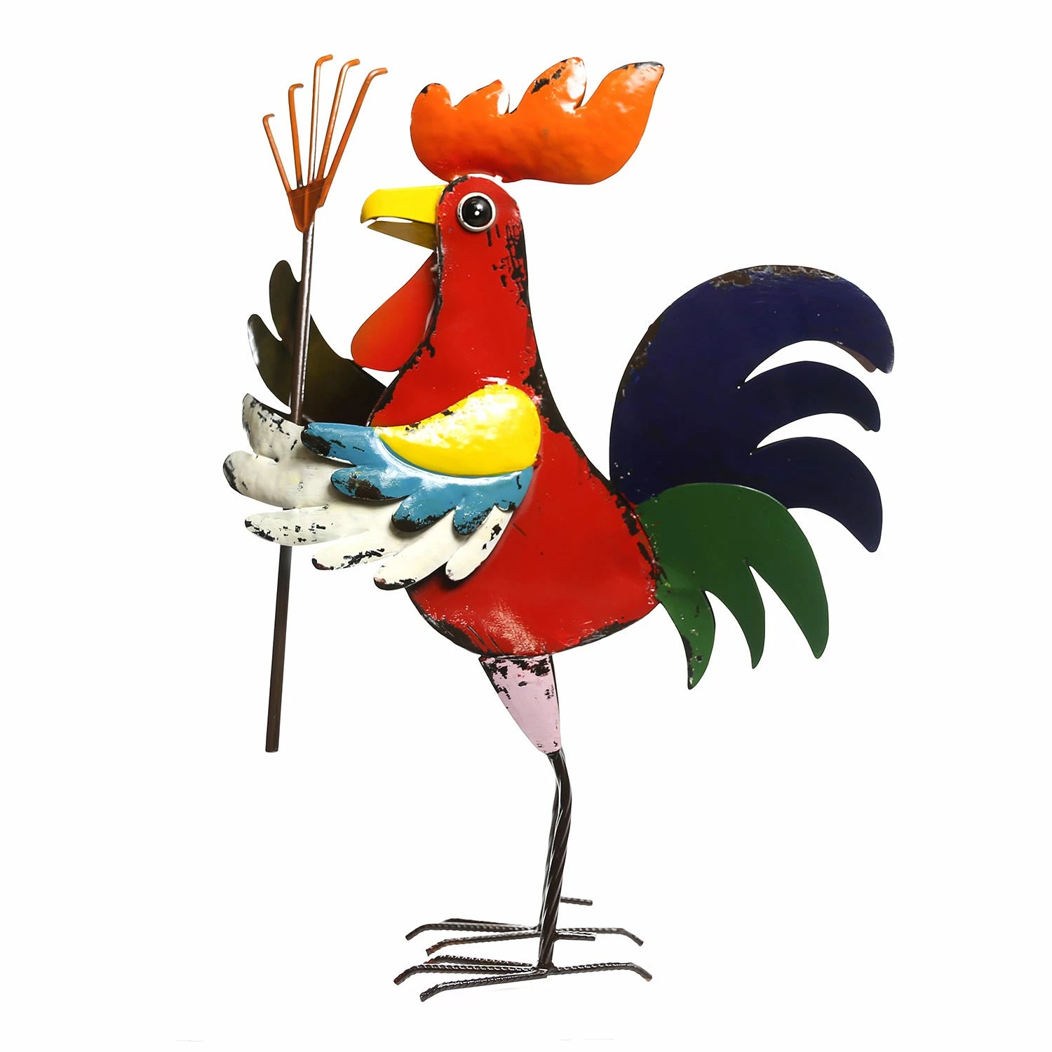 Let our colorful rooster stand on your porch or outdoor setting and capture your heart. These unique metal sculptures, create an eye-catching scene that will brighten any garden atmosphere.