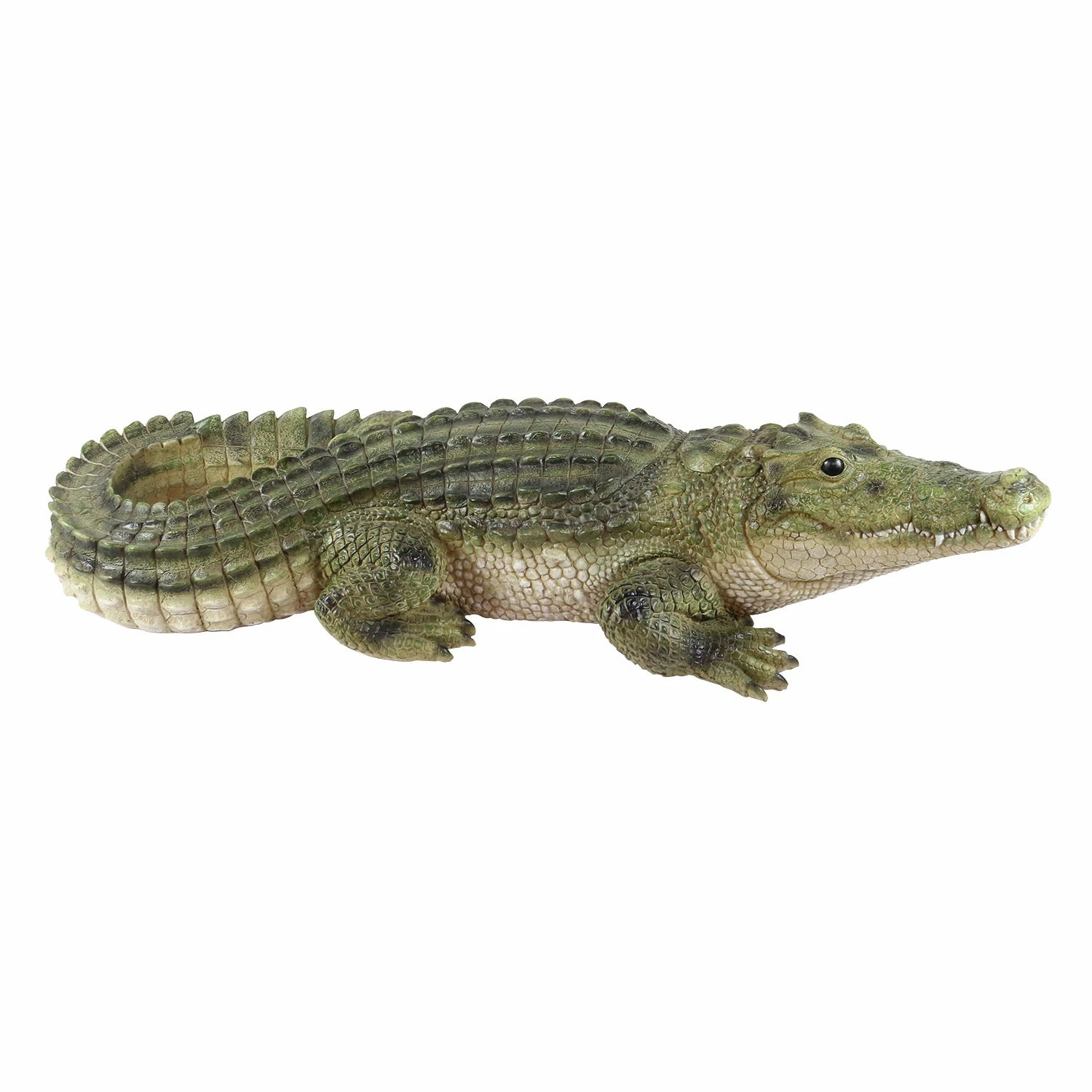 This polyresin statue of a crocodile is life-like and fits perfectly in a grassy or tree filled area. The resting majestic animal also looks right at home near a pond or pool.
