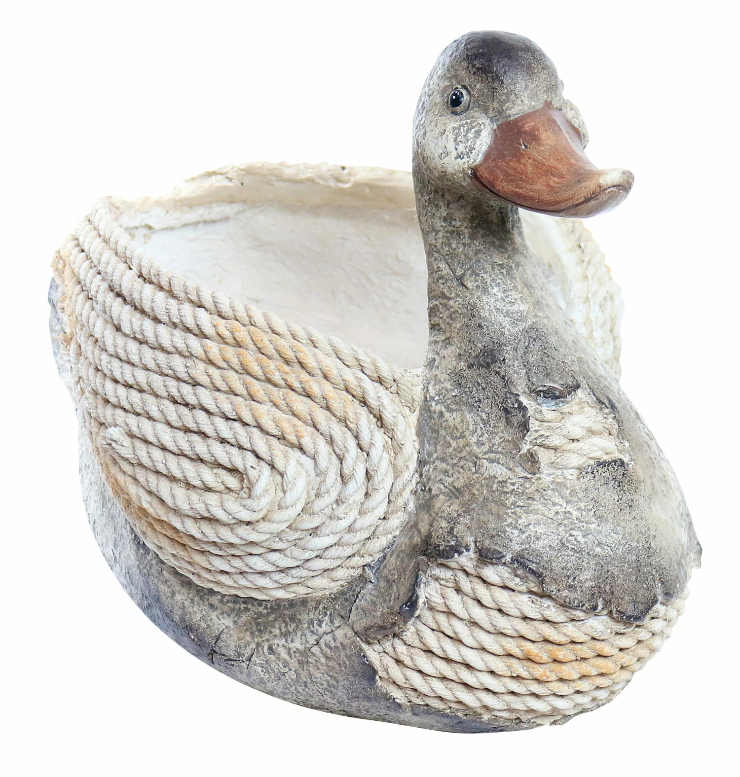 This charming duck rope planter is a perfect fit for any lawn or garden. Beautifully constructed out of polyresin material and finished to look like natural stone and rope.
