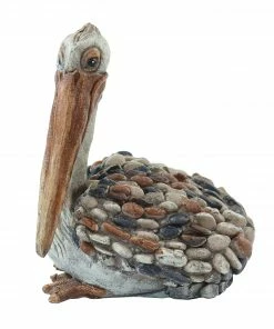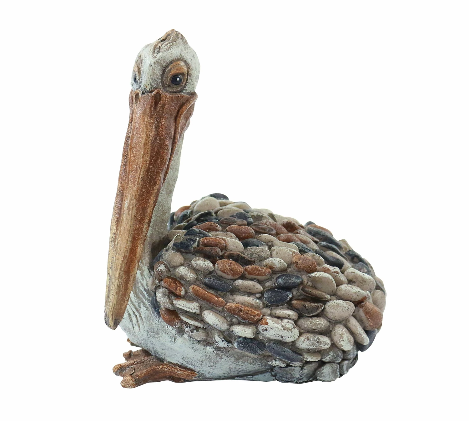 Beautifully arranged stone-like pebbles make up the wings of this charming pelican statue. Made of polyresin and finished to simulate real stone.