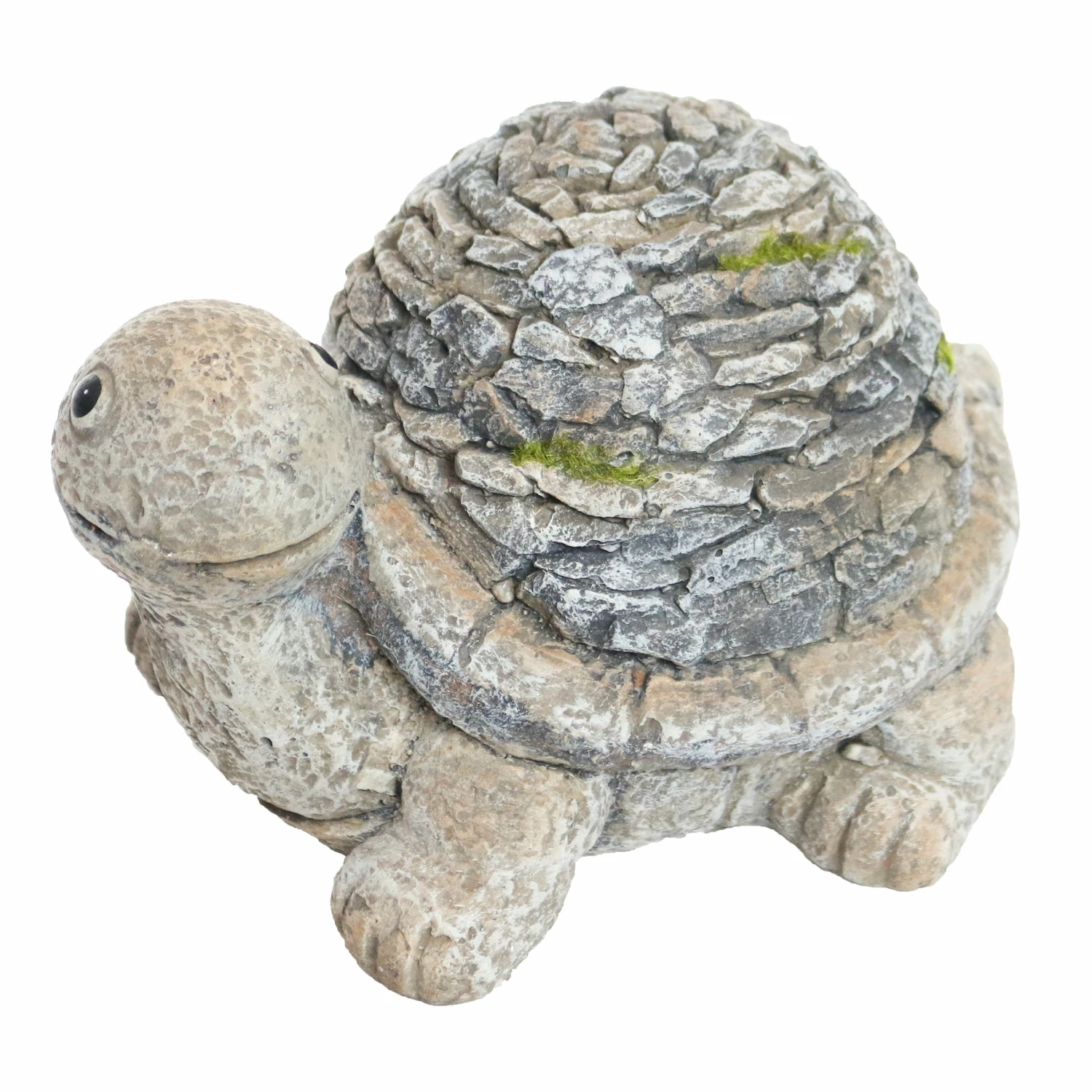Beautifully arranged stone-like pebbles make up the shell of this charming turtle statue. Made of polyresin and finished to simulate real stone.