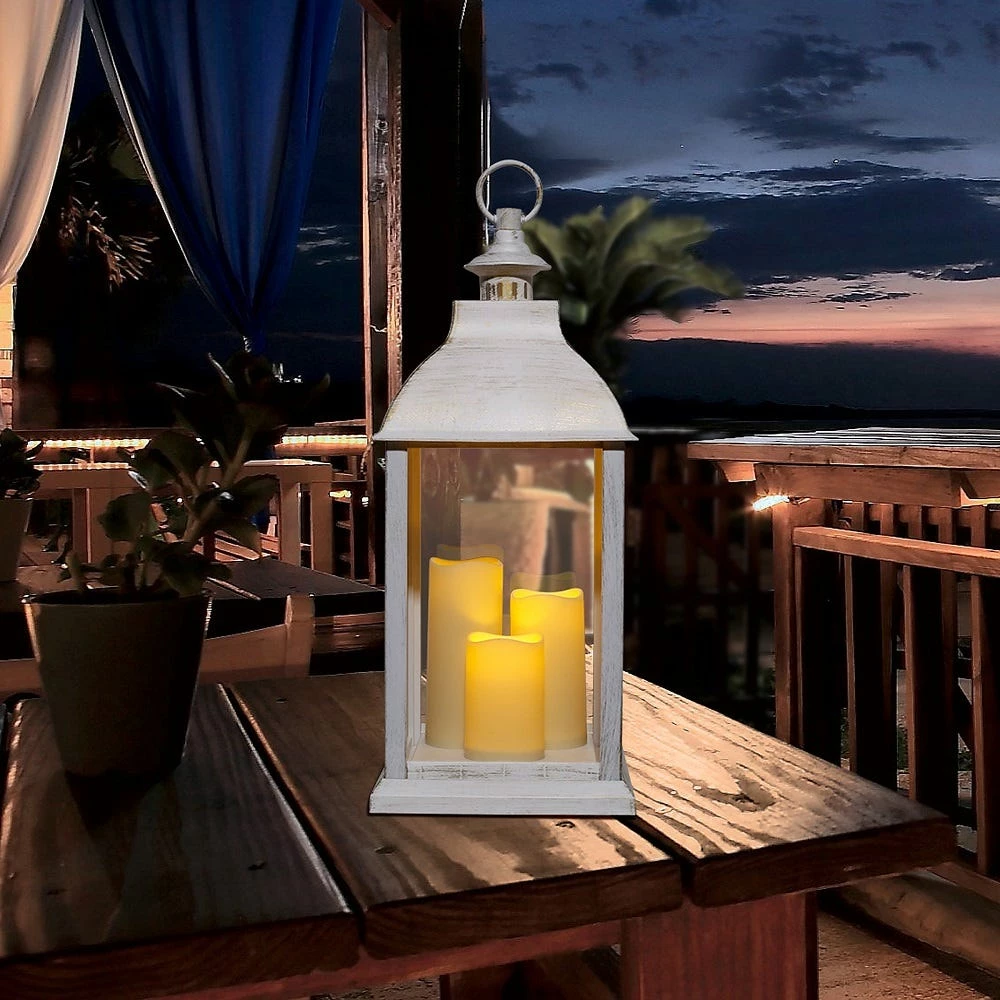 - GREAT DECORATIVE CANDLELIT LANTERN: Masterfully crafted White Candlelit Lantern with 3 Flickering Warm White LED Lights and a battery life of up to 6 hours make a great addition to any type of outdoor décor
