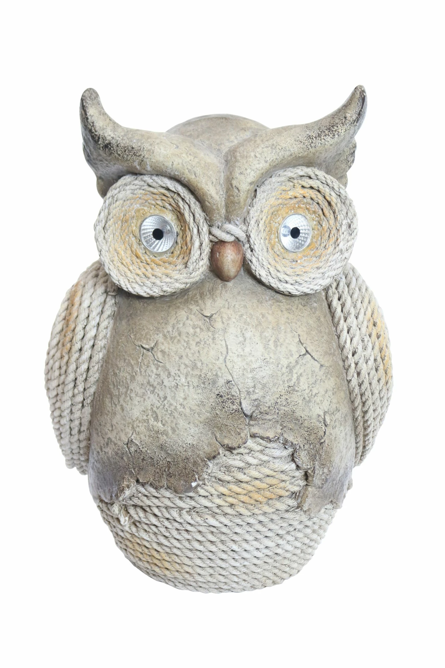 This solar owl’s eyes light up at night to great effect. Beautifully constructed out of polyresin material and finished to look like natural stone and rope. Solar panels provide up to 6 hours of power on a full charge