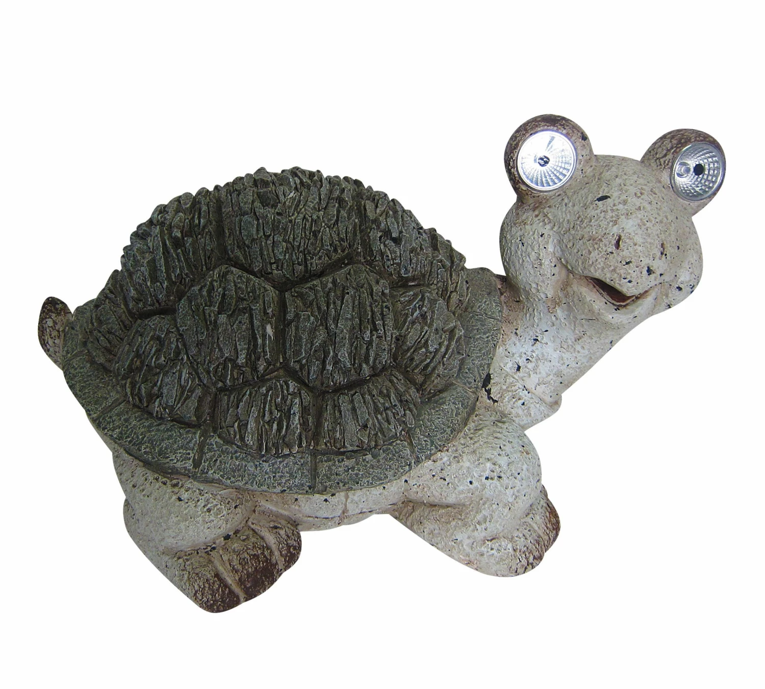 This solar turtle statue is the perfect addition for any outdoor space. The polystone construction offers a truly unique look that is sure to impress and please. This charming statue gazes out from his home with 2 bright LED lights.