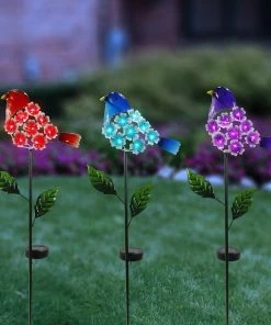 Alpine Solar Hydrangea Bird Stake – QLP1306A – Garden Accessories